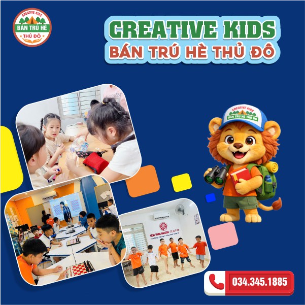 Creative Kids Thủ Đô – Nơi mùa hè của con trở thành hành trình rực rỡ. Với sự đồng hành từ Công ty Thủ Đô, chúng tôi cung cấp giải pháp bán trú hè toàn diện, kết hợp dinh dưỡng và trải nghiệm kỹ năng thực tế cho học sinh lớp 1-5.